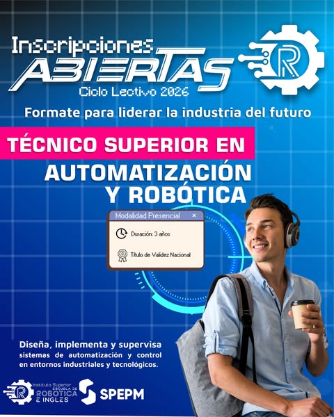 TÉCNICO SUPERIOR EN AUTOMATIZACIÓN Y ROBÓTICA Formate para liderar la industria del futuro El Técnico Superior en Automatización y Robótica estará capacitado para diseñar, implementar y supervisar sistemas de automatización y control en entornos industriales y tecnológicos. Su formación integra …